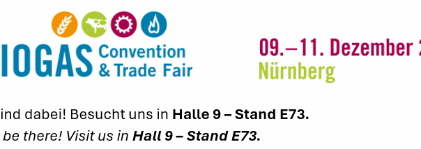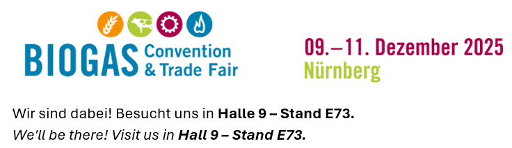 From 9 to 11 December 2025, the BIOGAS Convention & Trade Fair invites you to the industry gathering of the year in Nuremberg. We will be there as exhibitors; you can find us in Hall 9, Stand E73.
